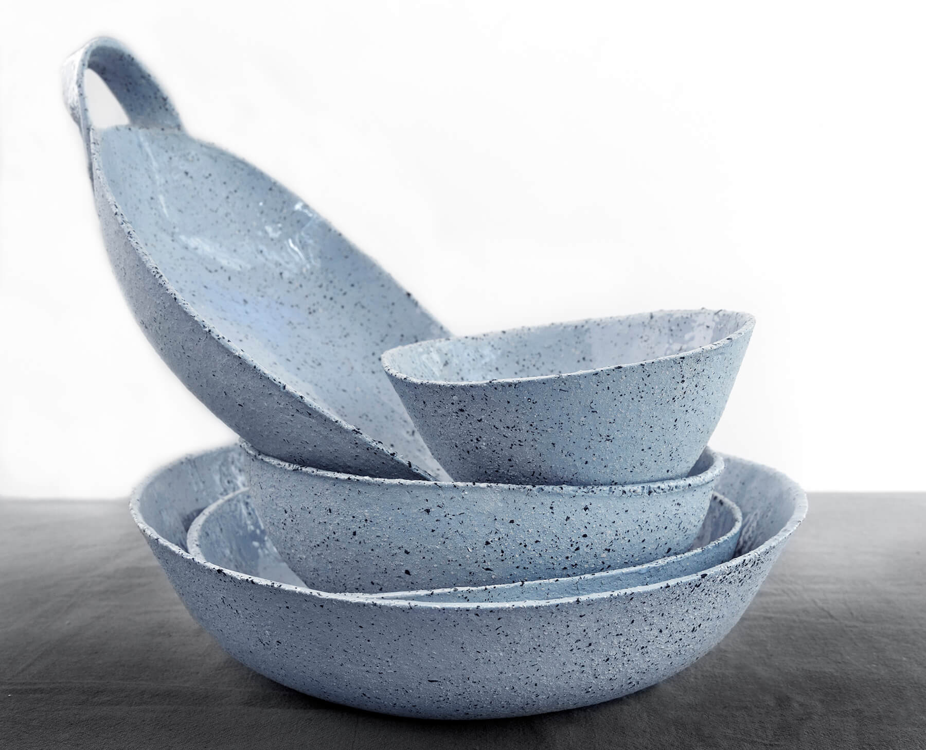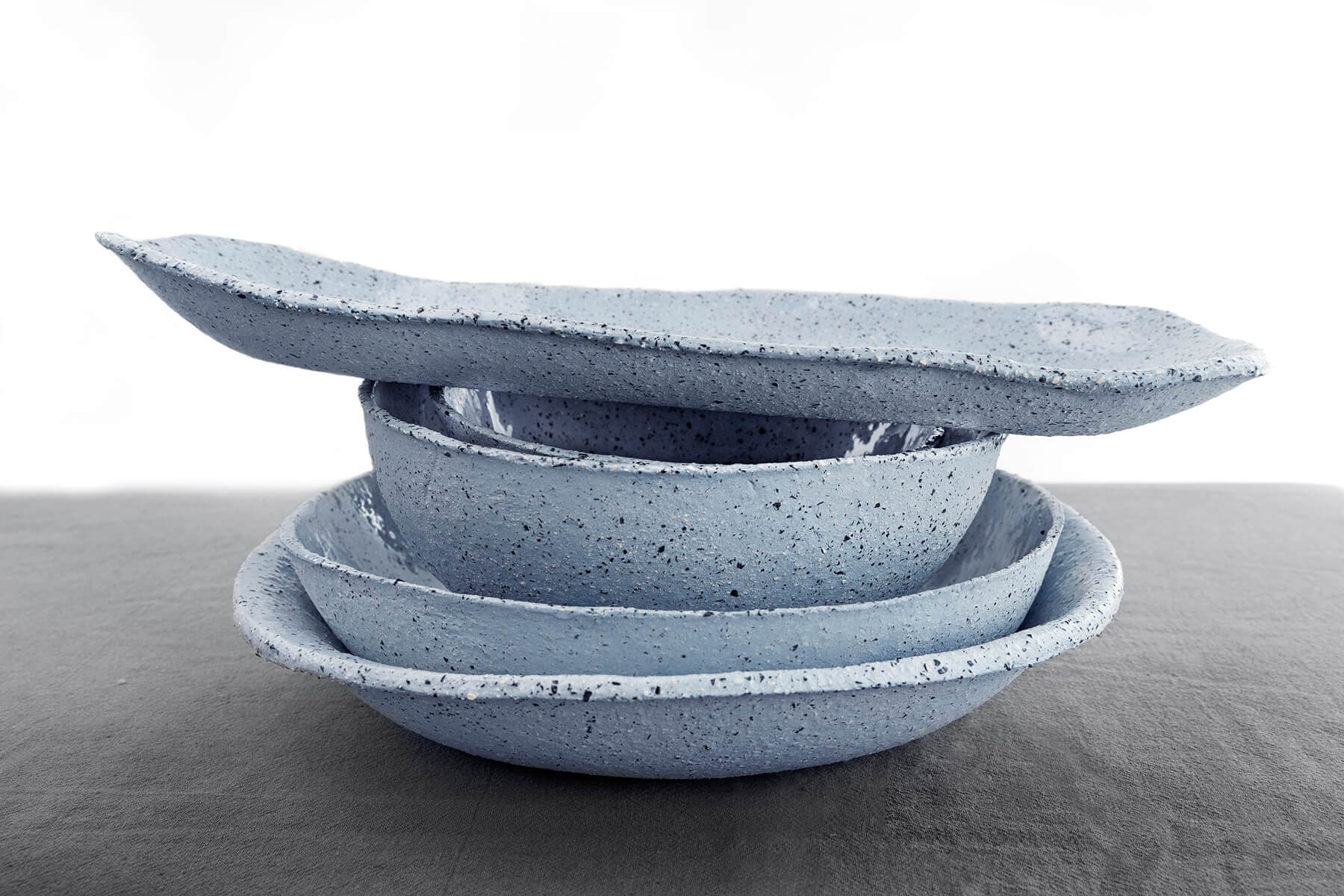 קרמיקה בגוון תכלת, מונחת על מפה אפורה – שילוב של רוך ונוכחות.האור הרך עוטף את הפרטים, נותן למרקם לדבר בעד עצמו…